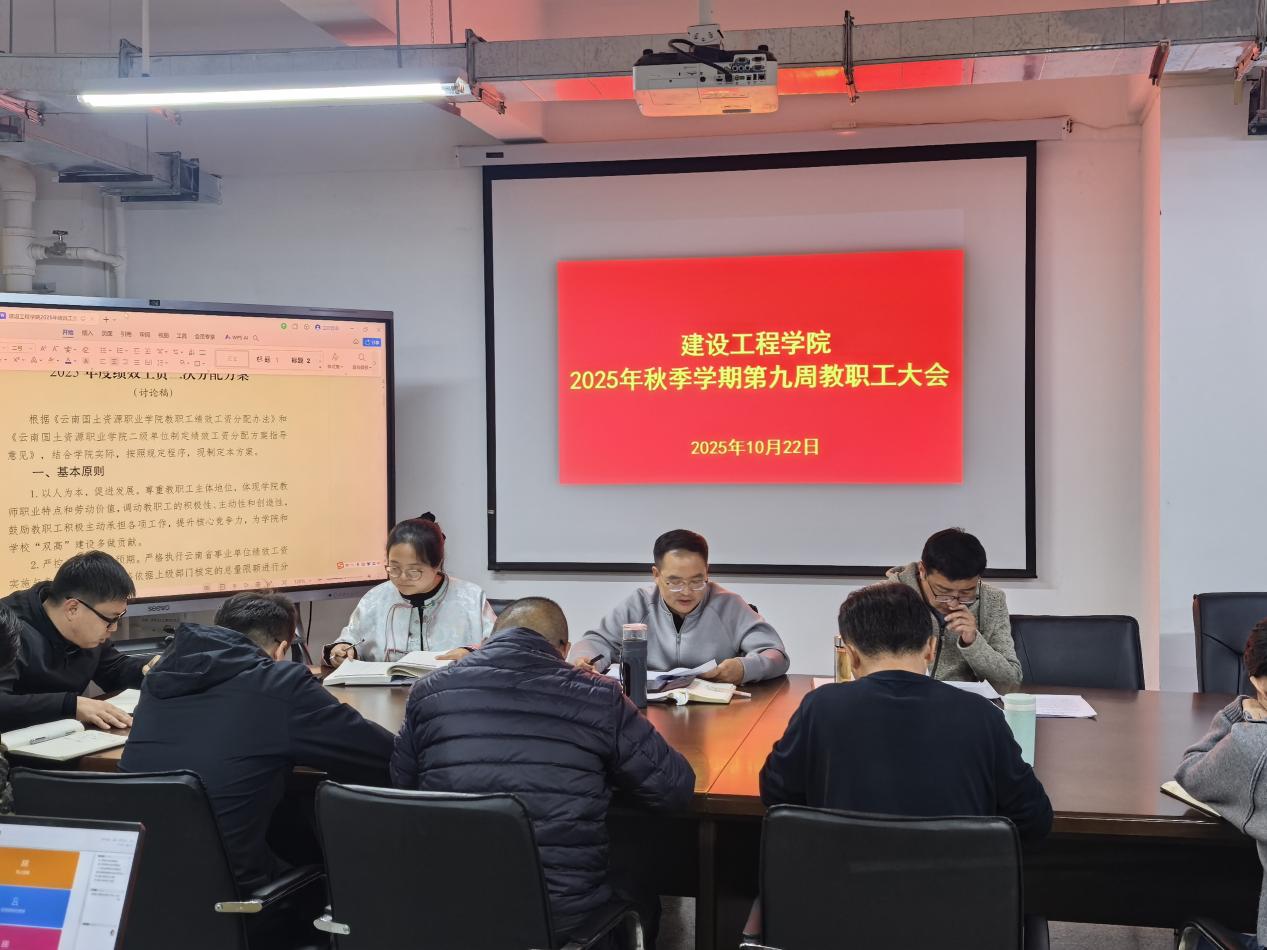 10月22日,建设工程学院在明尚楼 C301 会议室召开2025年秋季学期第9周教职工大会。会议由学院党委书记李洪香主持,全体教职工参加。