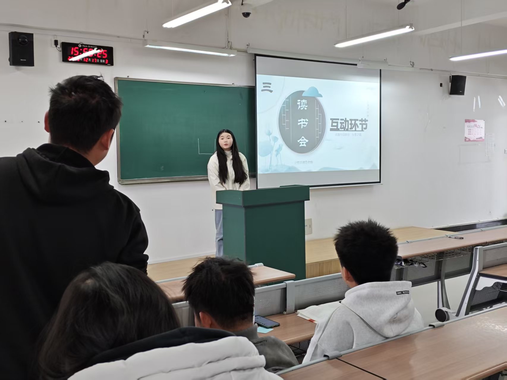 张磊老师以“开卷有益,求同存异,交流即获得”引航,与学子共赴思想盛宴。分享者们怀揣阅读心得,循“文明其精神,野蛮其体魄”之念,让不同故事与思考交织成温暖有力的思想洪流。