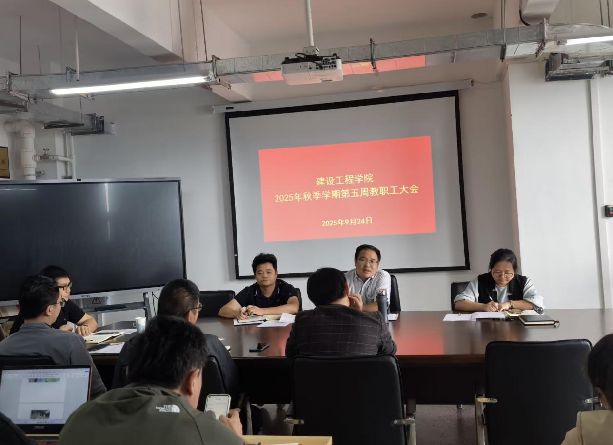 2025年9月24日下午,建设工程学院在明尚楼C301会议室召开2025年秋季学期第5周教职工大会暨人才培养工作状态数据采集与管理平台填报工作培训会。会议由学院党委书记李洪香主持,全体教职工参加。