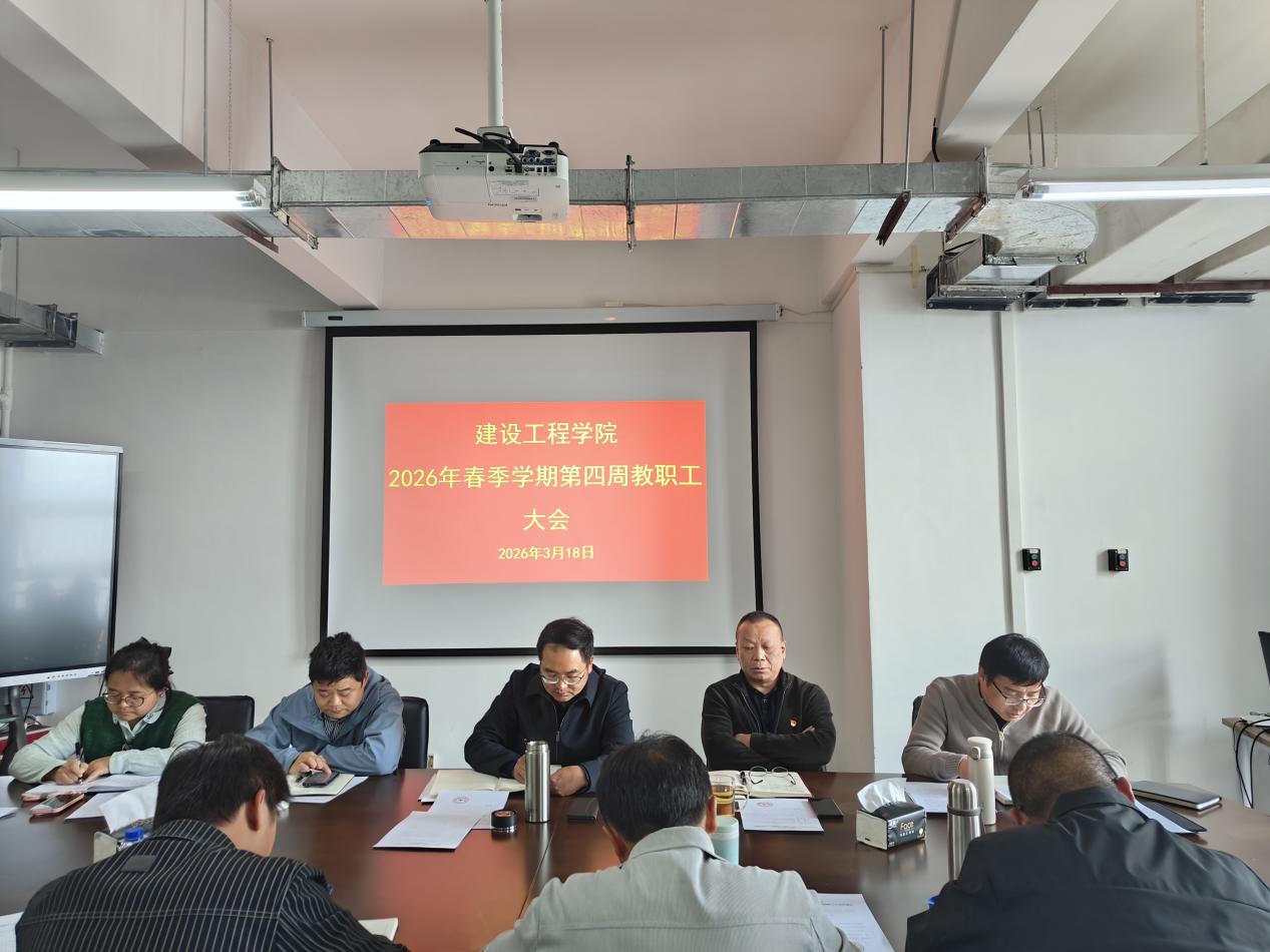 2026年3月18日,建设工程学院在明尚楼C301会议室召开2026年春季学期第4周教职工大会。会议由学院党委书记李洪香主持,全体教职工参加。